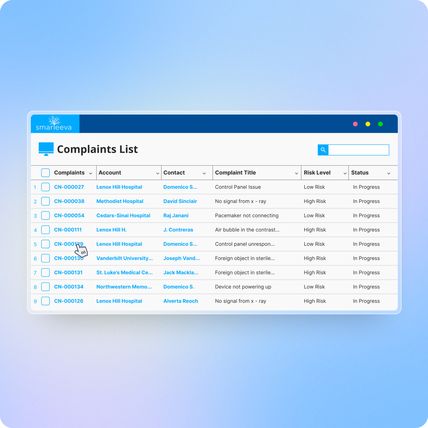Smarteeva's AI continuously monitors complaint trends and adverse event patterns, flagging emerging safety signals before they become regulatory incidents or recalls.