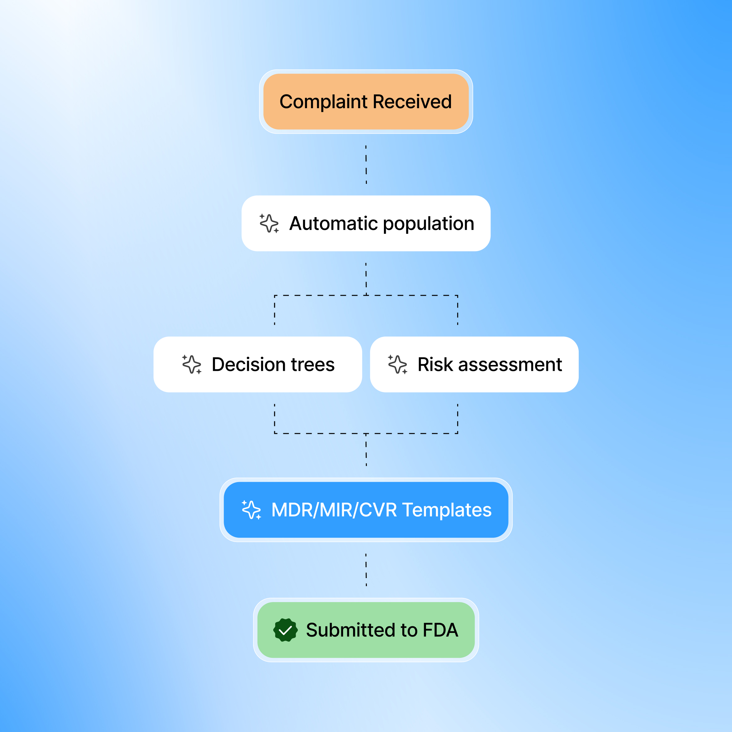 Every MedWatch report, every MDR, every PSUR requires manual data assembly. As the number of reportable events and product families grows, your regulatory team's reporting burden grows proportionally. They spend their time assembling data, not ensuring submission quality.
